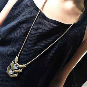 J.Crew Long Crystal Pave Arrow Brass Pendant Necklace