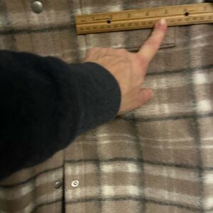 Plaid lined long jacket size large. Fits on the bigger side. 16 1/2 pit to pit