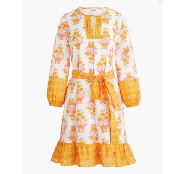 J.Crew Long Sleeve Block Print Floral Dress Orange India Cotton Tunic Med Pink