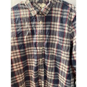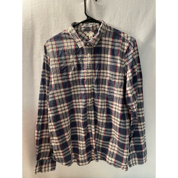 J.Crew Long sleeve button down plaid blue red white large NWOT denim women’s