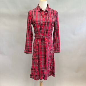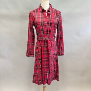 J.Crew Long sleeve tie-waist shirtdress in tartan plaid size 6 button up