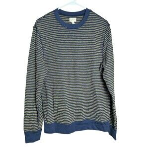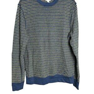 J.Crew Long-Sleeve Textured Sweater-Tee in Navy Gold Stripe US Men's Medium M