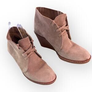 J. Crew MacAlister Wedge Booties Italian Suede Leather Neutral Tan | Sz 5