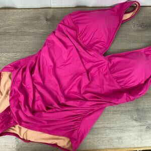 J.Crew Magenta Orchid Ruched V Neck One Piece Swimsuit Sz.22W NWT