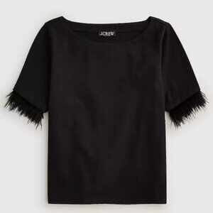 J.Crew Mariner jersey cropped boatneck T-shirt with feathers in Black