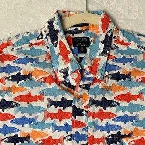J.Crew Men Size Medium Fish All Over Graphic Print Style AU528 Button Shirt