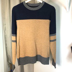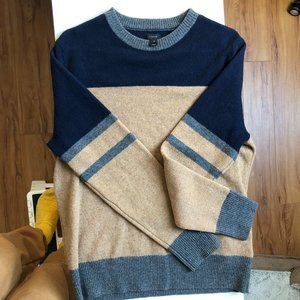 J.Crew Mens Blue Brown 100% Lambswool Crew Neck Pullover Sweater Size Medium