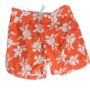 J.Crew Mens Board Shorts 38 Orange Floral Swim Trunks Hawaiian Beach