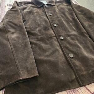 J.Crew Mens Brown Suede Leather Jacket L Preppy Outdoor Quilted Fall Coat Hiking