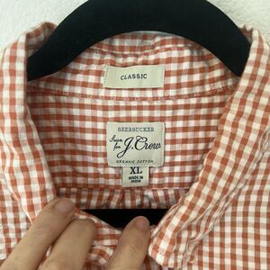 J.Crew Mens Button Shirt Xl Classic Fit Check Long Sleeve Seersucker Org Cotton