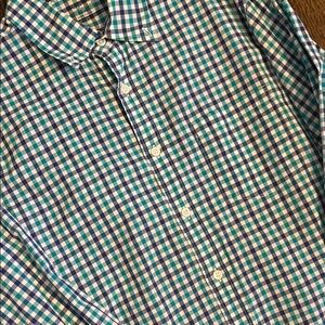 Used once still like new Light weight men's checkered shirt featuring a classic blue and green pattern. Perfect for both casual and formal occasions.