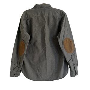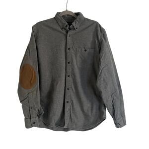 J.Crew Mens Charcoal Faux Leather Elbow Patch Flannel Button Down- Size L