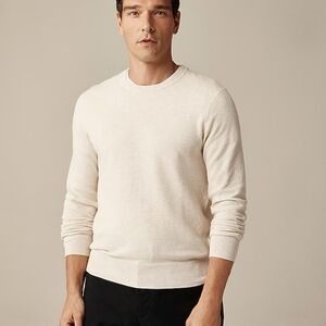 J.Crew Mens Cotton piqué-stitch crewneck sweater Size L In Cream Pullover