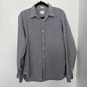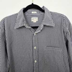 J.Crew Men's Gingham Shirt L 16-16½ Blue White Cotton Button Down Mauritius