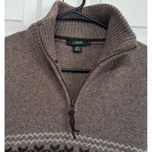J.Crew Men's L Brown 100% Lambs Wool 1/4 Zip Long Sleeve Turtleneck Sweater