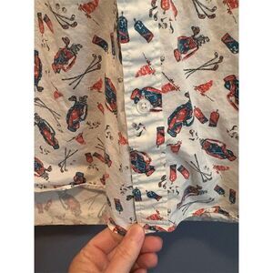 J.Crew Men's Large Beige Golf Graphic Print Short Sleeve Button-Up Shirt