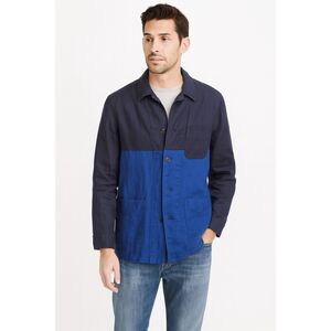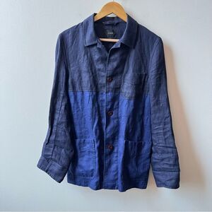 J.Crew Mens Linen Navy Blue Chore Work Shirt Jacket Size Small