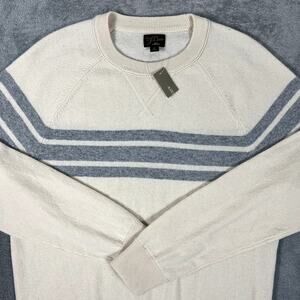 J.Crew men’s cashmere sweatshirt-style sweater in size medium. Features classic marine stripes and premium soft cashmere for an elevated, timeless look. Perfect for effortless quiet luxury and coastal-inspired outfits. New with tags.