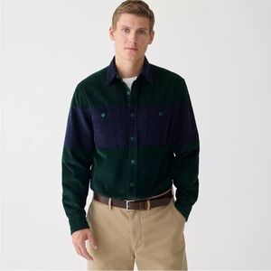 J.Crew Men's Midweight Corduroy Workshirt Green Blue Colorblock Size SMALL