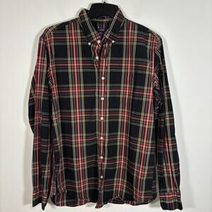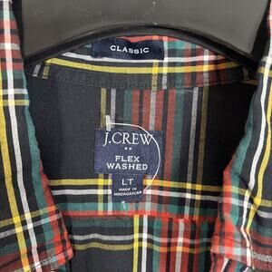 J.Crew Mens Shirt LT Large Tall Flex Washed Black Red Tartan Plaid Long Sleeve