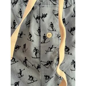 Charming skier graphic print in navy on light blue. Elastic waistband with drawstring, lightweight and comfortable. Excellent pre-owned condition. Extremely soft and cozy.