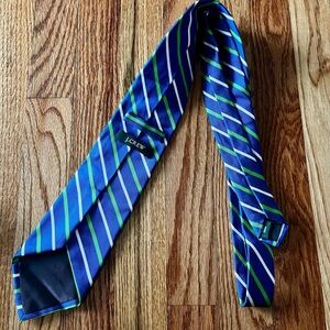 J.Crew Men’s Tie Silk Blue Striped With Green and White
