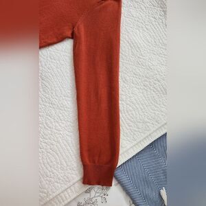 Elegant men's terracotta color V-neck sweater from J. Crew. Ideal for versatile styling.