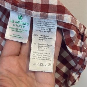 JCrew size XL long sleeve button up shirt. Brown and white checkered print. Slim fit. Flex washed. Cotton blend. Clean and great quality.