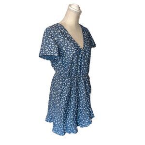 From J. Crew Mercantile comes this adorable Chambray Faux Wrap Dress. Features white small floral print over blue denim-like chambray. Faux wrap style with ruffle detailing. Pull on styling. Measurements in pictures.