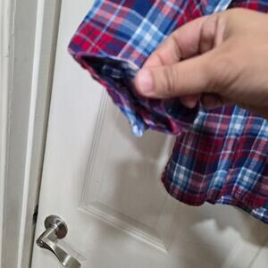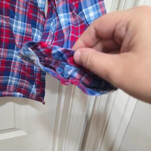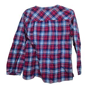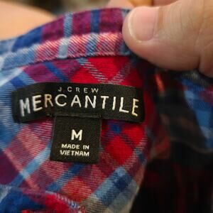 J.Crew Mercantile Plaid Ruffle Blouse Women’s M Red Blue Long Sleeve