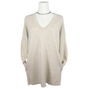 J.Crew Merino Wool Oversized V-Neck Sweater Tan Neutral w/ Pockets | Small