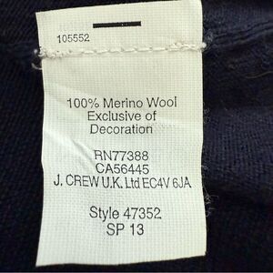 Add a touch of timeless elegance to your wardrobe with this J.Crew Merino Wool V-Neck Tank in a sophisticated navy hue, accented with vibrant yellow, turquoise, and pink trim. Crafted from 100% Merino wool. This XS sleeveless sweater offers a luxurious feel and classic V-neck design, perfect for layering or standalone wear. Ideal for transitional seasons, this preowned piece is in good condition with normal wear, featuring a soft knit texture and care tag details (dry clean only). See all photos of the actual item for a clear reference, and feel free to send a message for additional photos or information. Bundle with other items from my closet to save on shipping. Enjoy fast shipping on this stylish J.Crew find!