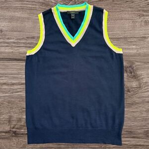 J.Crew Merino Wool V-Neck Sweater Tank Top Navy with Colorful Trim Size XS