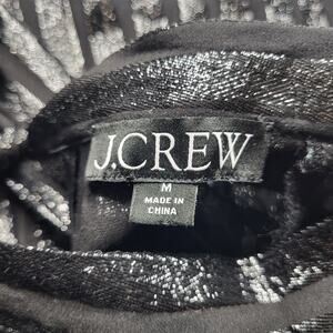 J.Crew Metallic Silk Blend Chiffon Mock Neck Top Black Stripe Tie Shirt Medium