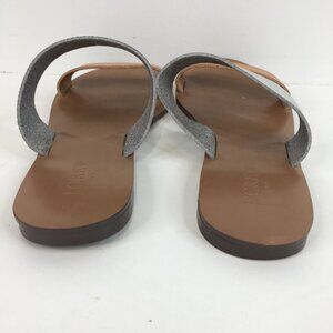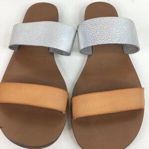 J.Crew Metallic Silver Tan Double Strap Slip On Sandals Size 7
