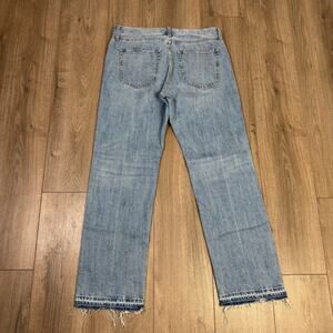 J.Crew Mid-Rise Straight Leg Jean WMNS 29 Elise Wash Blue Rigid Denim Frayed Hem