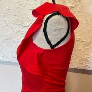 JCrew Monday Dress Fiery Sunset Red Wool Suiting Ruffle Gold Zipper Sz 00 f4012