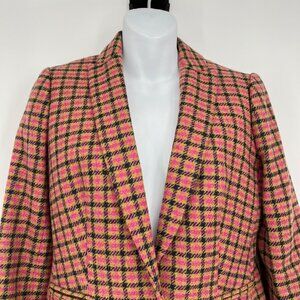 pink plaid blazer, wool blazer, vintage blazer, size 8 blazer, houndstooth blazer, pink black checked, single button blazer, retro jacket, 80s fashion, vintage womenswear, plaid wool jacket, winter fashion, office wear, Dark Academia, Office, Academia, Clueless, Twee, Back to school