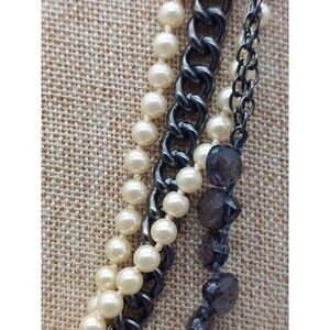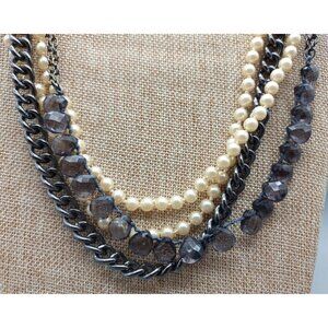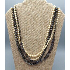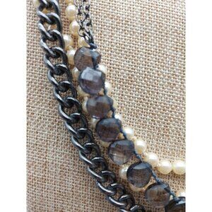 J.Crew Multi Strand Gun Metal & Faux Pearl Collar Necklace 20" Smokey Gray Beads