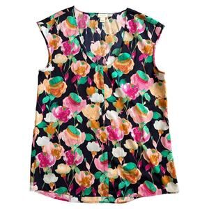 J.Crew Multicolor Floral Cap Sleeve Scoop Neck Blouse, US4