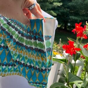 Add a pop of color to your wardrobe with these vibrant J.Crew geometric print shorts! Featuring a bold blend of turquoise, yellow, green, and navy in a fun diamond pattern, these eye-catching shorts are perfect for summer outings, vacations, or festival season. Tailored fit with side zip closure for a clean silhouette. Style C2001 from SU 15.