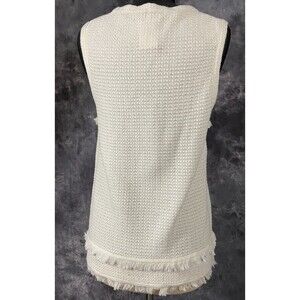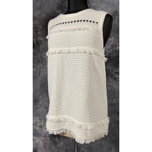NWT, no flaws. Made of 100% cotton in ivory knit. Features pullover styling, relatively lighweight fabric, fringe details, sleeveless, straight bottom hem.