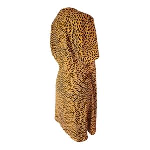 Chic and effortless, this J.Crew short sleeve wrap dress (Style AO413) features an allover leopard print on a rich golden-tan base. Designed with a flattering V-neckline and a side tie waist that creates a custom fit, this 100% polyester dress is perfect for work, brunch, or casual evenings out. Size 10 with a sleek and stylish silhouette.