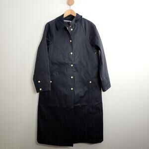 J. Crew, Long Barn Coat, Black Waxed Twill, Size Small, Removable Vest, Quilted Liner, Corduroy Collar, Water Resistant, Heritage Style, Duster Coat, Trench Coat, Preppy, Dark Academia, Minimalist, Old Money Aesthetic, Fall Jacket, Winter Coat, Luxury Outerwear