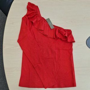 J.Crew NWT Red One-shoulder Rib Ruffle Top S