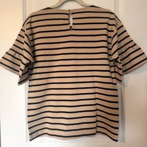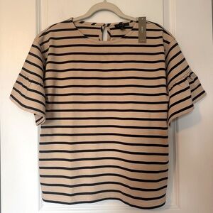 J.Crew NWT Striped Tan and Navy Women's Ruffle Short Sleeve Top