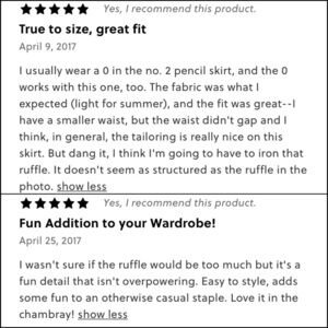 Just in: J. Crew NWT light weight blue chambray pencil skirt with pretty cascading ruffle is perfect with a striped tee or coordinating top. Size 4, see photos for measurements.