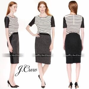 Just in: J.Crew NWT cream & black striped thick stretch knit top with genuine black leather short sleeves is perfect with a pencil shirt for a sophisticated look. Exposed gold back zip adds to the modern feel of this unique top. NWT, retailed at $148. Value priced at $20 off! Size large.