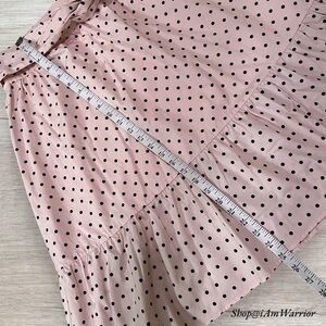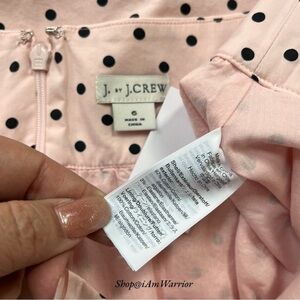 Super cute is this NWT J. Crew baby pink cotton miniskirt with black polkadots, ruffled hem and bow tie waist. Pair this with your favorite tee and sandals for cute look. Show here with my black ruffle top, sold separately. Size 6, dee photos for measurements.