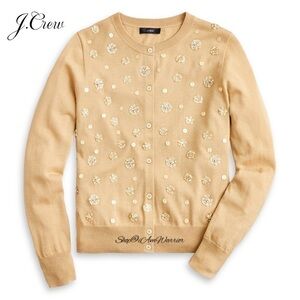 J.Crew NWT tan jeweled embellished crewneck cotton cardigan *shop@iamwarrior